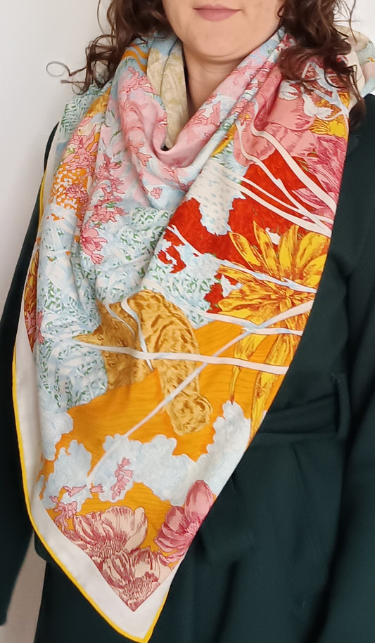 Jedwabno-Wełniany Szal w Tropikalnym Wydaniu